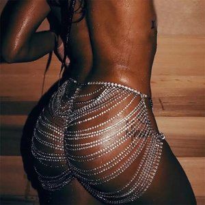 Multi-Layer Rhinestone Hip Chain Underwear Women Beach Jewelry Body Chain Skirt