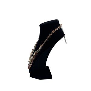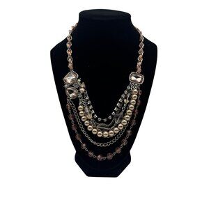 Multi-Layered Statement Necklace With Faux Pearls Crystals & Pink Chain By NY