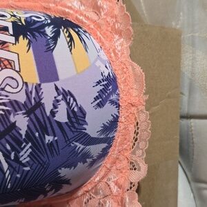 Set of three bras with unique patterns. Includes tropical, cloud, and animal print designs. Features lace detailing. No tags, but never worn. NWOT