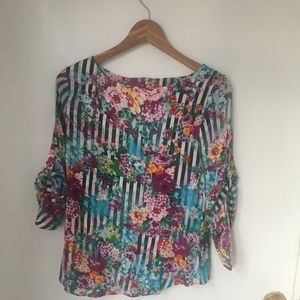 Beautiful Patterned long sleeve blouse | like new, barely used | cute button up detail on sleeve making it a 3/4ths sleeve | very soft and flowy | fits best a small or fit on a medium