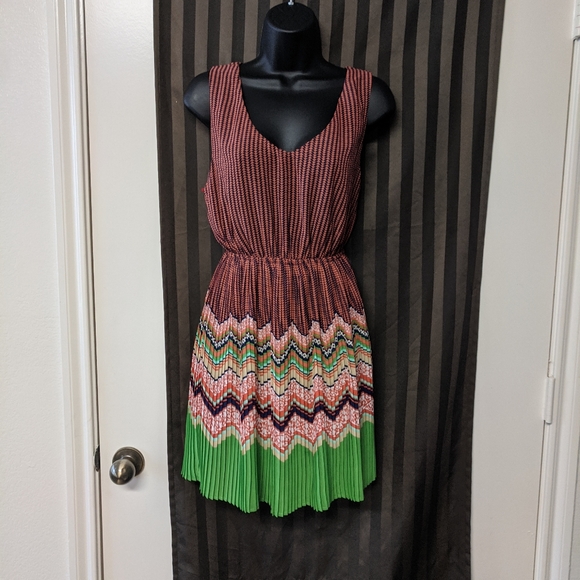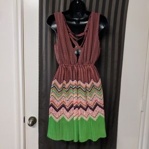 Multi-Patterned/Colored mini dress with v-cutout and straps on the back of the dress