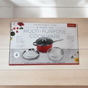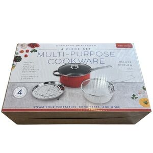 Upgrade your kitchen with this versatile 4-piece Multi-Purpose Cookware Set in a stylish burnt orange color. Perfect for steaming vegetables, cooking pasta, and more!