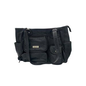 MultiSac Black Faux Leather Multi-Pocket Shoulder Bag With Adjustable Straps
