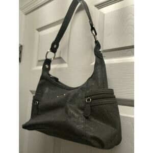 Multi-Sac Black Vinyl Handbag Basic Classic Timeless Shoulder Bag Purse