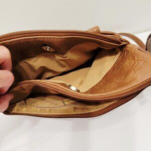 MultiSac Brown Tan Zig Zag Crossbody Shoulder Bag Purse Floral