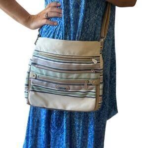 MultiSac Striped Crossbody Fabric Purse Bag Tan Blue