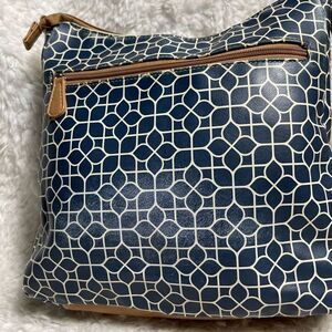 MultiSac Synthetic Navy Blue & White medium shoulder/crossbody bag brown trim