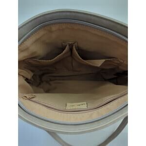 MultiSac Tan Gray Vegan Leather Shoulder Bag Adjustable Strap 10 x 8 x 2