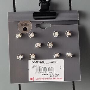 Beautiful multi-set earrings by Occasion featuring 5 pairs in varying styles: studs, hoops, and drop earrings. Each pair is adorned with clear faux crystals, perfect for any outfit or event. New on the original card.