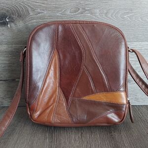 Multi Shades of Brown Patchwork Crossbody Bag Messenger Bag
