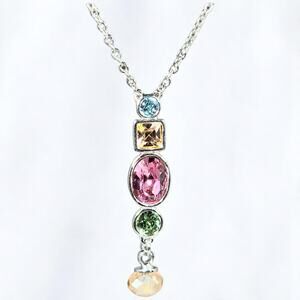 Multi-Stone Drop Pendant Necklace Made with Swarovski Crystals 16" + 2" Extender
