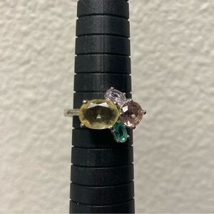 Multi glass stone silver ring in size 7. In really good condition. No tarnishing. Costume jewelry.