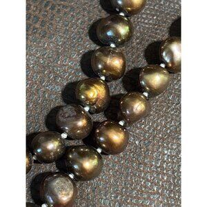 Multi-Strand 18" Sterling silver Necklace W/ Bronze Pearls Tigers Eye Jasper & C