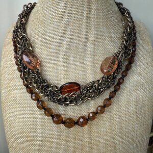 Multi-Strand Bronze Chain & Amber Beaded Statement Necklace By Talbots