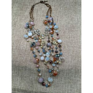 Multi-Strand Faceted Bead Statement Necklace – Soft Neutrals & Pastel Glass