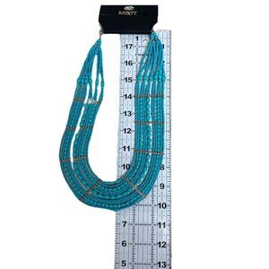 ๐ต Add a pop of bold, bohemian charm to your look with this multi-strand faux turquoise beaded fashion necklace! Designed with layered strands of vibrant turquoise-colored beads and accented with silver-tone spacers, this striking statement piece is perfect for elevating any outfit from casual to glam. โจ
