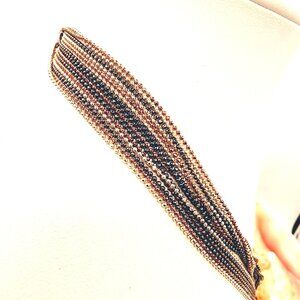 Embrace elegance with this multi-strand necklace featuring a sophisticated blend of sterling silver, gold and rose beaded chains. Crafted in Italy by Milor, it brings a stylish touch to any jewelry collection. This necklace really sparkles!