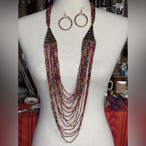 Multicolored Multi-Strand Necklace + Matching Earrings