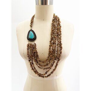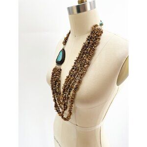 Multi-Strand Necklace Turquoise Pendant chip-style beads