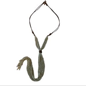 Multi-Strand Gray Faceted Lariat Style Necklace on Brown Cord.