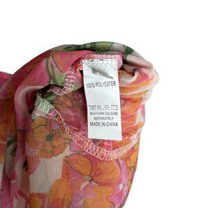 Keywords: floral maxi dress, halter neck dress, summer dress, polyester dress, pink dress, adjustable straps, orange dress, lined dress, large dress, vibrant dress, garden party dress, elegant dress, empire waist dress, Fairycore, angelcore, Vacationcore, Cottagecore