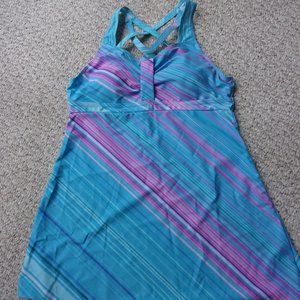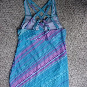 Bright Blue Tankini with Pink, Purple, and Blue hues strips