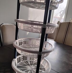 Organize with this multi-tier white storage rack. Perfect for any room.