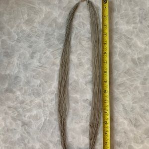 Beautiful multi strand fine chain with ring pendants. Some tarnish on chain from the pendants sitting in a box. 17” long can be doubled or hang straight.