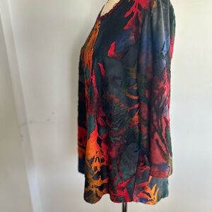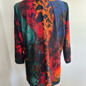 Elevate your wardrobe with this vibrant multicolor abstract blouse. Perfect for any occasion, this top features a stunning blend of colors that will make you stand out.