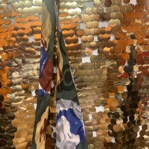 Elevate your style with this multicolor abstract pattern tie. Featuring a blend of green, blue, and orange hues, this tie adds a vibrant touch to any outfit.