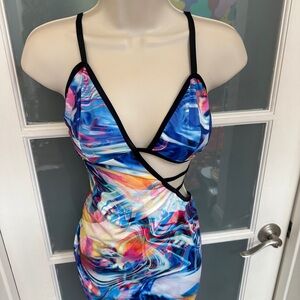 Stand out in this vibrant multicolor abstract print dress. Perfect for any occasion, this dress features a unique design that combines style and comfort.