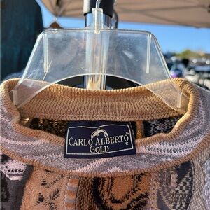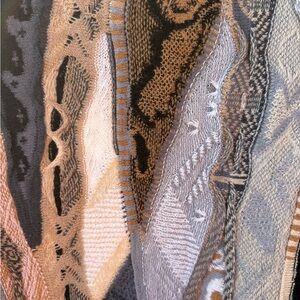 Discover the stylish Multicolor Abstract Sweater. This piece combines black, gray, cream, and tan tones for a chic look. Perfect for adding flair to your casual wardrobe. Inspired by COOGI sweaters.