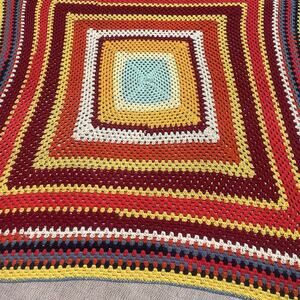 Multicolor Afghan Crochet Knit Granny Concentric Square Retro Roseanne 72x72