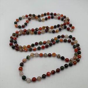 Multicolor Agate Gemstone Necklace Faceted Round Beads Polished Long 60 Inch