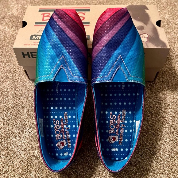 Women’s multi-color BOBS, memory foam cushion insole, original box included. Excellent condition!