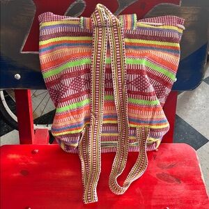 Vibrant and stylish, the backpack is perfect for any occasion. Featuring a multicolor design, this bag adds a pop of color to your outfit. Ideal for everyday use. Drawstring. Approximately 14x15”