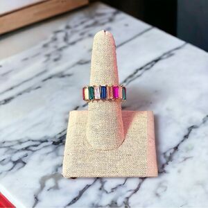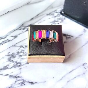Multi-color Baguette Rhinestone Gold Tone Ring Size 6.75 NWT
