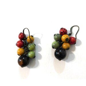 Multicolor Bead Necklace Pierced Earrings Set 4 Strand Wire Adjustable