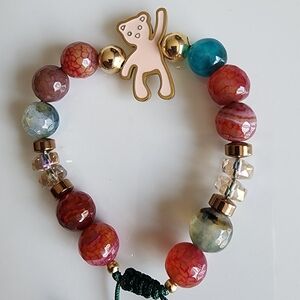 Multicolor Beaded Bracelet with Bear Charm
