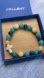 Stylish bracelet featuring blue, yellow, and black beads with a white cross charm.