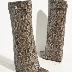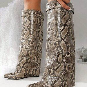 Multicolor Bohemian Women's Pointy Toe Wedge Heel PU Leather Knee High Boots