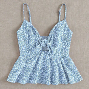 Multicolor Boho Full Print Plant Pattern Tie Front Cami Top