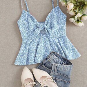 Multicolor Boho Full Print Plant Pattern Tie Front Cami Top