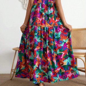 Multicolor Boho Womens Allover Floral Print Split Thigh Cami Dress