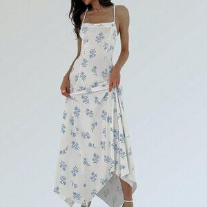 Multicolor Boho Women's Asymmetrical Hem Printed Spaghetti-Strap Dress
