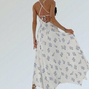 Multicolor Boho Women's Asymmetrical Hem Printed Spaghetti-Strap Dress