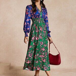Multicolor Boho Women's Fitted Spliced Print Dress