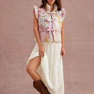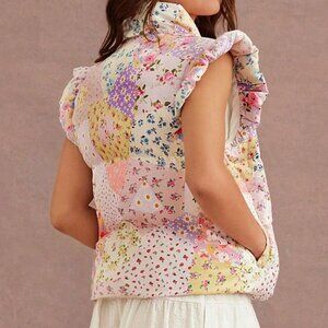 Multicolor Boho Women's Floral Print Cute Bow tie Front Puffer Vest