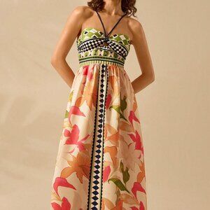 Multicolor Boho Women's Floral Print Hollow Out Sleeveless Extra Long Dress