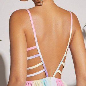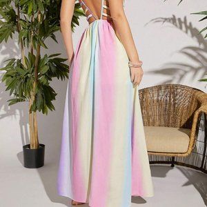 Multicolor Boho Womens Ombre Print Split Thigh Open Back Cami Dress